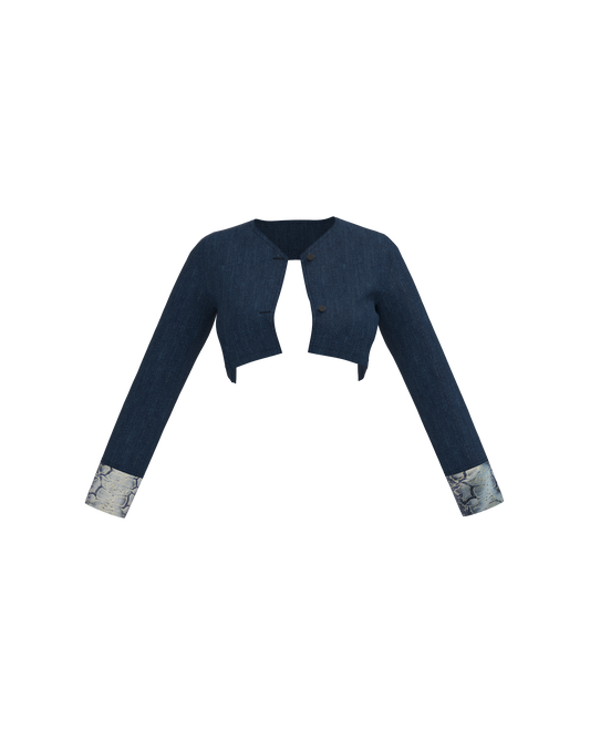 SNOB | TWO-TONE JEAN CURVE BACK CROP JACKET (PRE-ORDER ESTIMATED SHIP DATE (9/24)